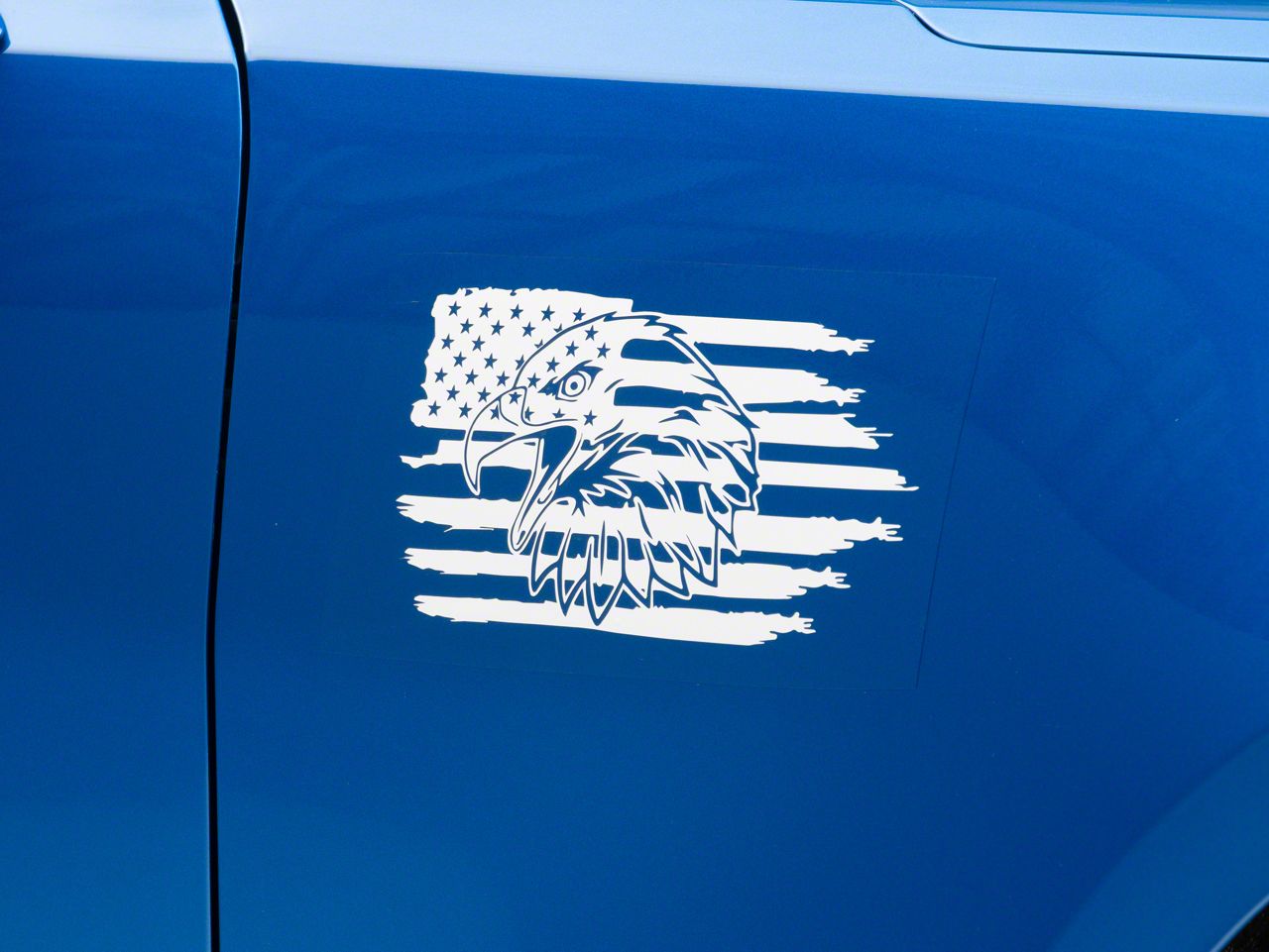 Patriotic Styling. Add proud patriotic styling to your ride with this SEC10 distressed Eagle Decal. This decal features an eagle head design over top of a distressed American flag. This Decal has a universal design, so it can be applied to any smooth flat surface and looks especially good in your rear or side windows.