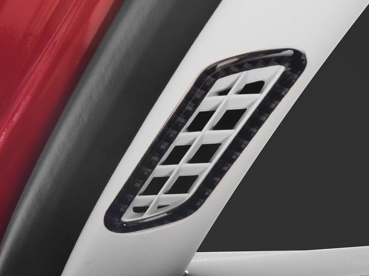 Bold, Modern Styling. A simple and effective way to add some bold, modern styling to the interior of your 2021-2025 Ford Mustang Mach-E is with SpeedForm's Black Carbon Fiber A-Pillar Vent Trim. This great looking, black Carbon Fiber Accent Trim is an inexpensive way to upgrade the appearance of your interior and it perfectly matches SpeedForm's complete line of other black carbon fiber interior styling parts.