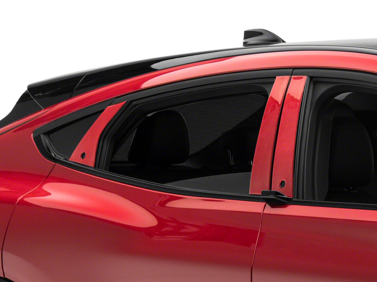 Application. This SpeedForm Exterior Pillar Post Trim; Red Carbon Fiber is designed to fit 2021-2025 Ford Mustang Mach-E models. Sold as a six piece kit.