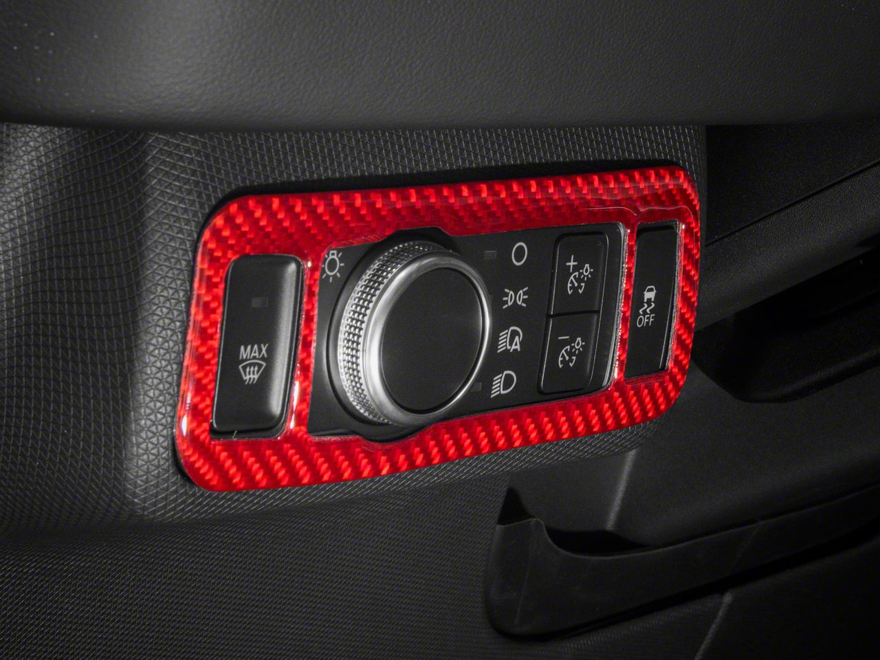 Application. This SpeedForm Headlight Switch Trim; Red Carbon Fiber is designed to fit 2021-2025 Ford Mustang Mach-E models.