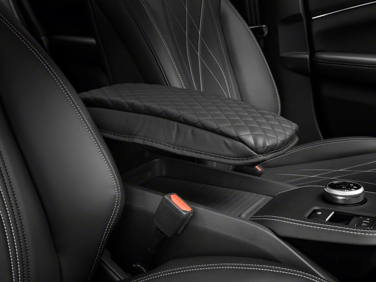 Protection and Comfort. An excellent way to protect your Mach-E's center console lid from excessive wear and tear is with an SpeedForm Console Armrest Cover. This Console Armrest Cushion features a soft foam pad covered in a diamond stitched faux leather material for great looks and superb comfort.