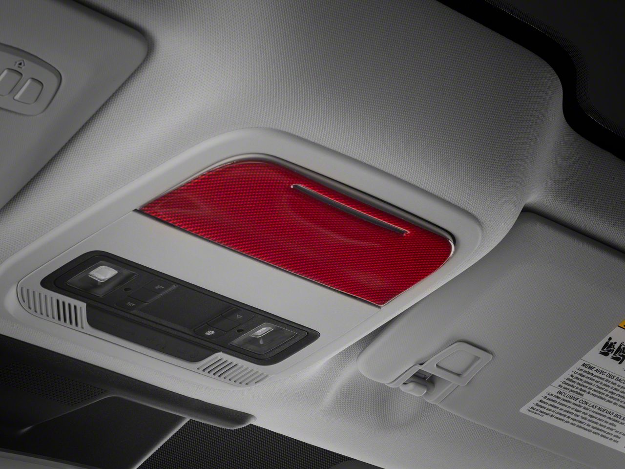 Bold, Modern Styling. A simple and effective way to add some bold, modern styling to the interior of your 2021-2025 Ford Mustang Mach-E is with SpeedForm's Red Carbon Fiber Overhead Console Trim Accent. This great looking, red Carbon Fiber Accent Trim is an inexpensive way to upgrade the appearance of your interior and it perfectly matches SpeedForm's complete line of other red carbon fiber interior styling parts.