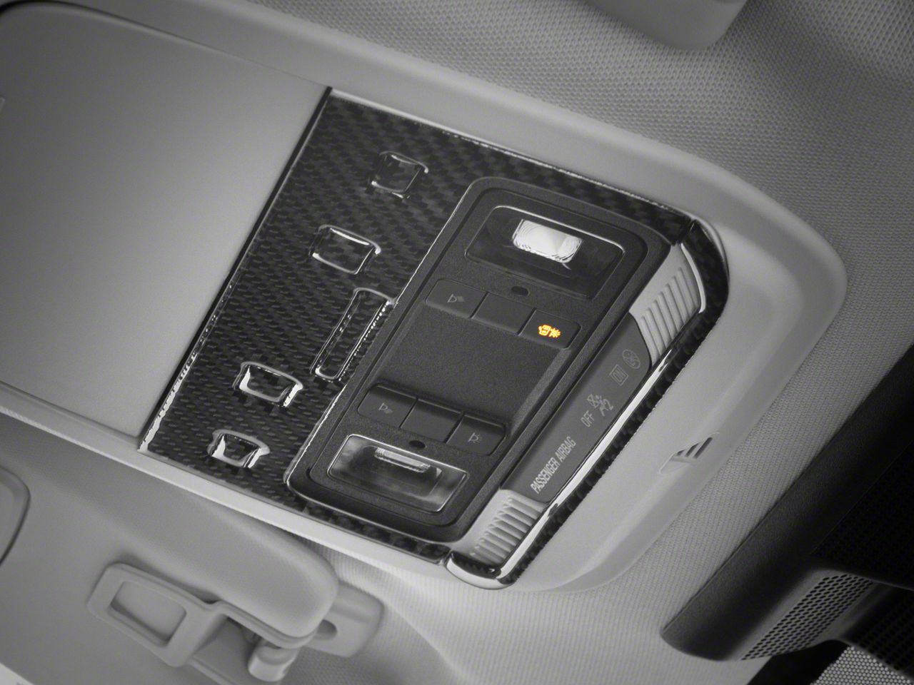 Bold, Modern Styling. A simple and effective way to add some bold, modern styling to the interior of your 2021-2025 Ford Mustang Mach-E is with SpeedForm's Black Carbon Fiber Reading Light Frame Bezel Trim Accent. This great looking, black Carbon Fiber Accent Trim is an inexpensive way to upgrade the appearance of your interior and it perfectly matches SpeedForm's complete line of other black carbon fiber interior styling parts.