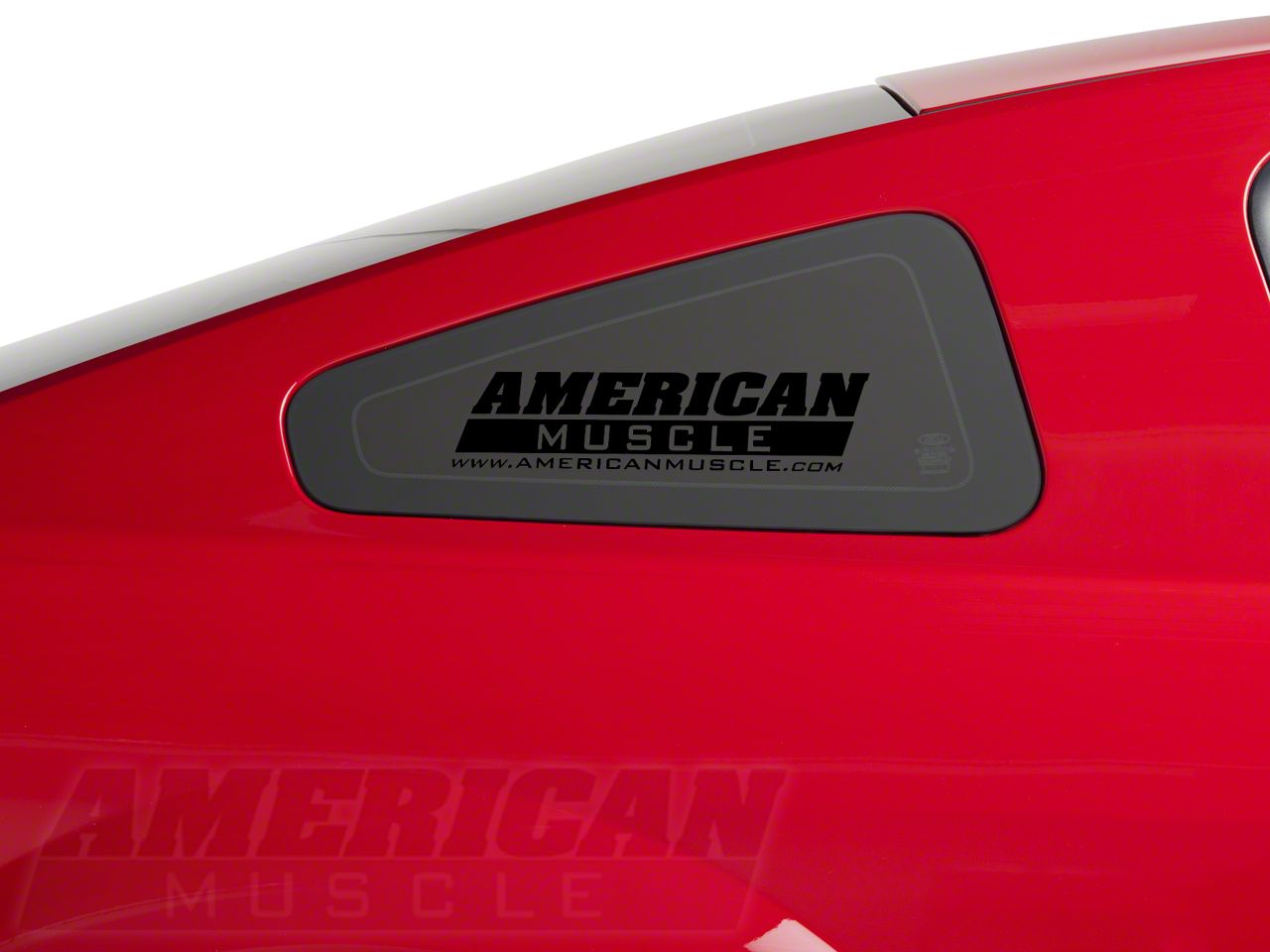 Application. This SpeedForm AmericanMuscle Quarter Window Decal; Gloss Black is desinged to fit 1979-2014 Ford Mustang models. Sold Individually.