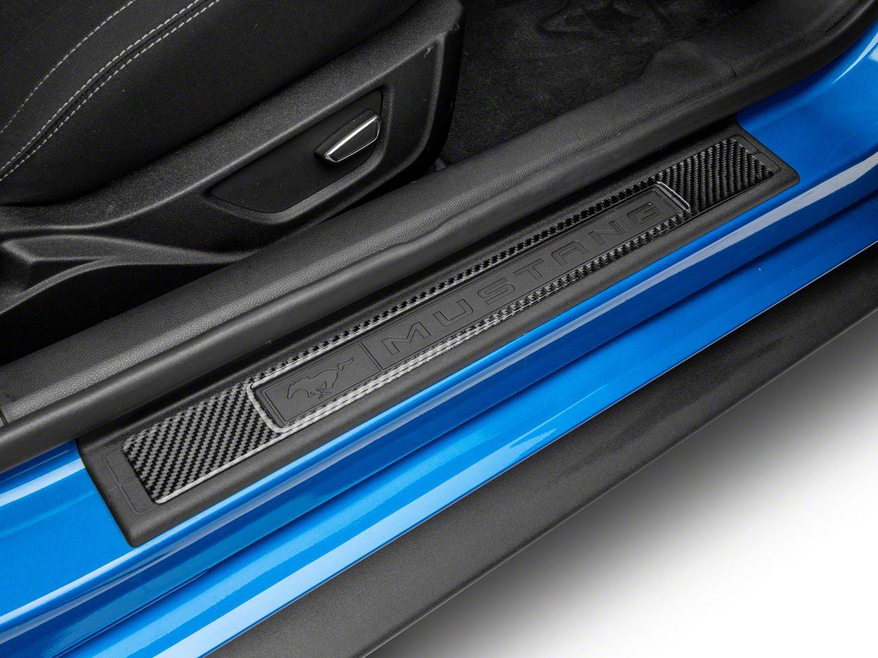 Bold, Modern Styling. A simple and effective way to add some bold, modern styling to the interior of your 2015-2023 Ford Mustang is with SpeedForm's Carbon Fiber Door Sill Surround Accent Trim. This great looking, black Carbon Fiber Accent Trim is an inexpensive way to upgrade the appearance of your interior and it perfectly matches SpeedForm's complete line of other black carbon fiber interior styling parts.