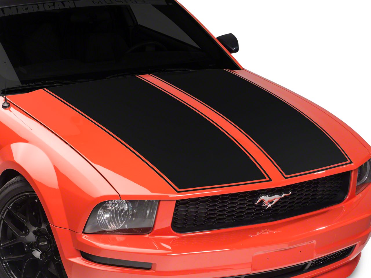 Application. These SpeedForm Dual Hood Stripes; Matte Black are designed to fit 2005-2009 Ford Mustang GT and V6 models.