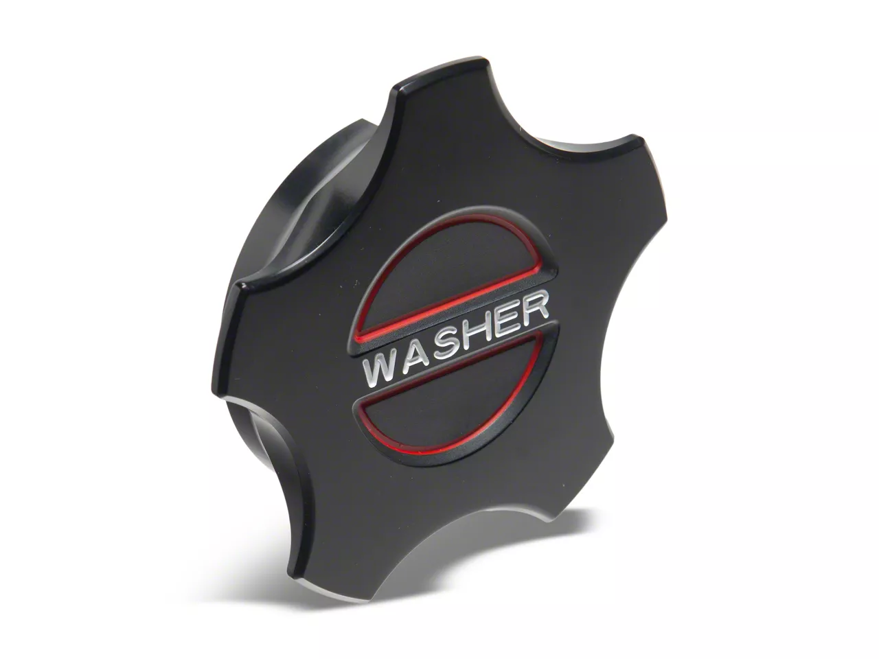 Impressive Under Hood Styling. Add a custom race inspired appearance to your Mustang's engine bay with a SpeedForm Modern Billet Windshield Washer Fluid Cap. This black anodized Windshield Washer Fluid Cap is a simple and inexpensive way to add some additional style under your Mustang's hood.
