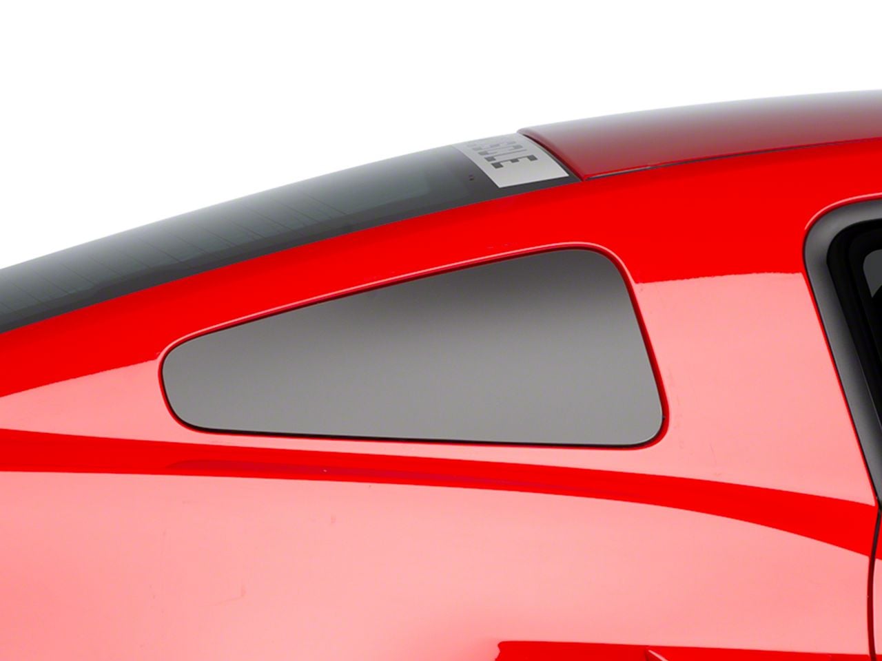 Aggressive Custom Styling. Even if you don't have quarter window louvers you can still give your Mustang a more aggressive appearance with just a set of Quarter Window Blackout Decals. These matte black vinyl decals simply apply to the exterior of your Mustangs quarter window glass for aggressive custom styling.
