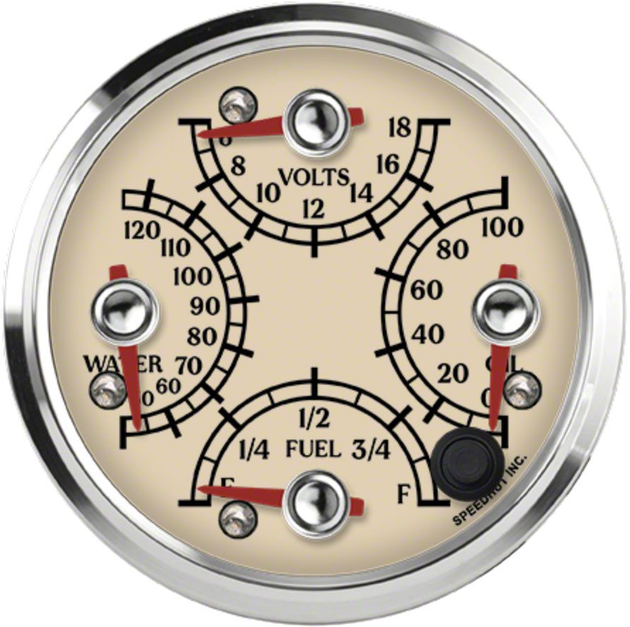 Speedhut Antique Series 3-3/8-Inch Quad Gauge; Fuel Level; Oil Pressure 0-100 PSI; 6-18 Volts; Water Temerature 50-125 Degrees Celcius (Universal; Some Adaptation May Be Required)