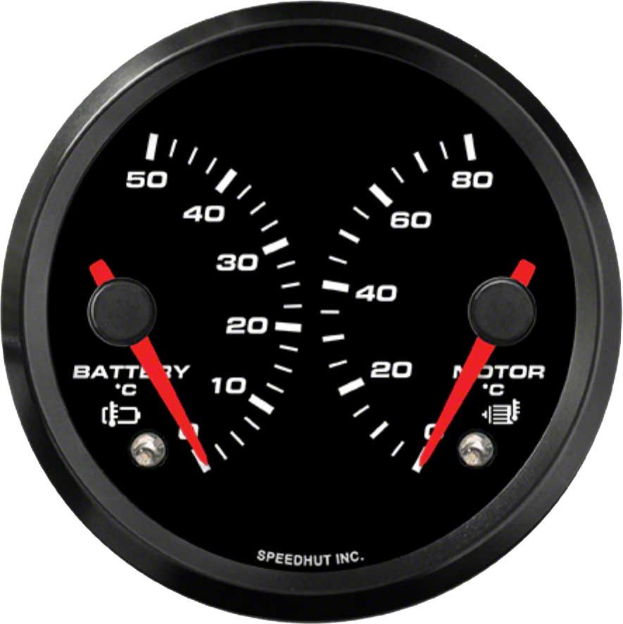 Speedhut EV Series Orion 3-3/8-Inch Dual Gauge with Warning; Battery Temperature; 0-50 Degrees Celcius; Motor Temperature 0-80 Degrees Celcius (Universal; Some Adaptation May Be Required)