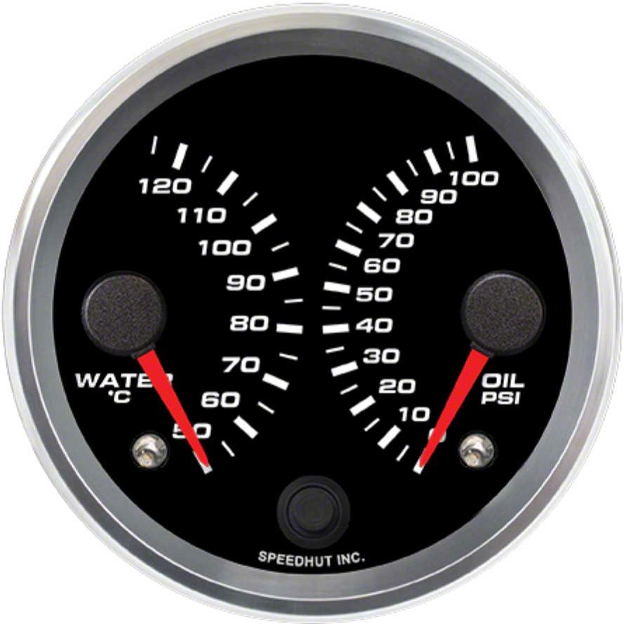Speedhut Revolution Series 3-3/8-Inch Dual Gauge; Oil Pressure 0-100 PSI; Water Temperature 50-125 Degrees Celcius (Universal; Some Adaptation May Be Required)