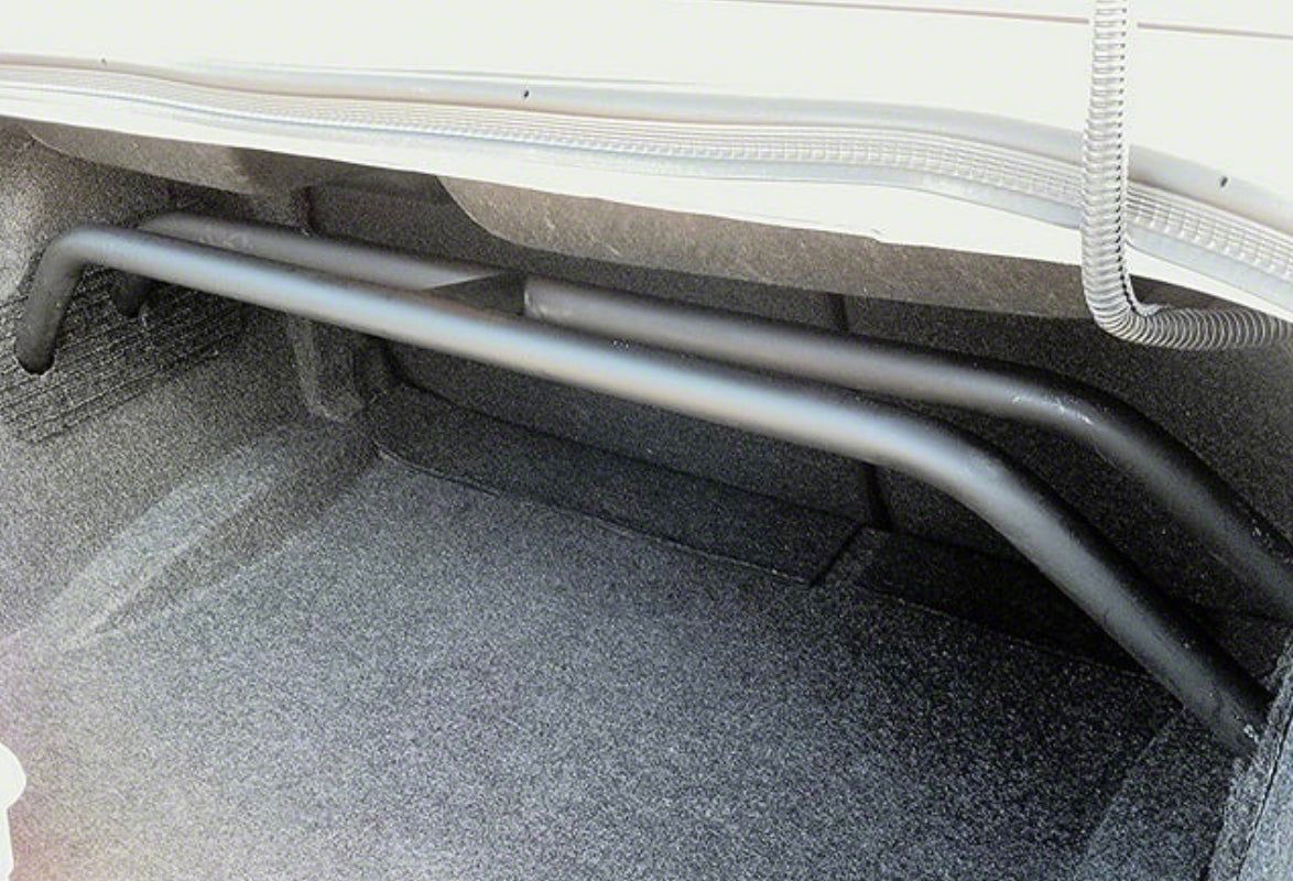 With our 2-point arched rear shock tower brace you get the benefits of tightening your rear suspension but you do not lose very much trunk space.