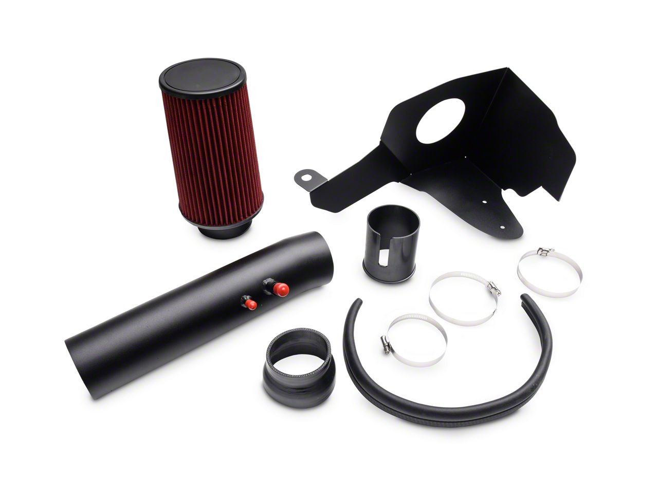 More Air, More Power. Installing a SR Performance Cold Air Intake on your 2011-2014 V6 Mustang will significantly improve its power and performance. This Intake replaces the restrictive, factory air box and paper filter with a high flow intake tube and filter assembly for a noticeable increase in both horsepower and torque. This SR Performance Cold Air Intake not only improves airflow for more power, but it will also add an aggressive appearance under the hood with its black powder coated aluminum intake tube.