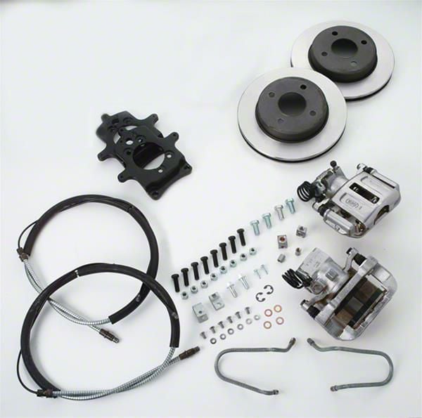 Practical and Convenient. The kit is comprehensive, with a built-in parking brake assembly for added convenience. It also includes DOT flex hoses and new hard lines to complete the upgrade. Installation is straightforward, thanks to the included brackets and hardware, making it a practical choice for both professionals and enthusiasts seeking to enhance their vehicle's performance and appearance.