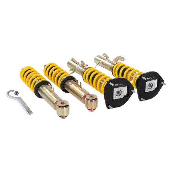 Control Ride Height. This ST Suspension ST-XTA Height and Rebound Adjustable Coil-Over Kit offers precision in height adjustment, allowing drivers to fine-tune the ride height to align perfectly with their driving needs and aesthetic preferences. The ability to adjust the vehicle's ground clearance not only enhances aerodynamics and center of gravity but also allows for a customized stance that can be set to the owner's liking.