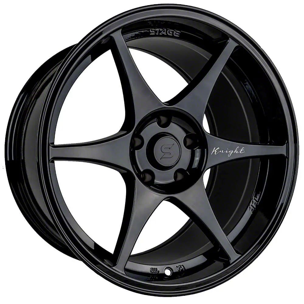 Stage Wheels Knight Black Wheel; 18x9.5. The Stage Wheels Knight Black Wheel offers a striking balance of style and refinement. Its unique design accentuates the vehicle's aesthetic, while the premium construction underscores its robust nature. This wheel is a perfect choice for those seeking both elegance and a strong visual statement.