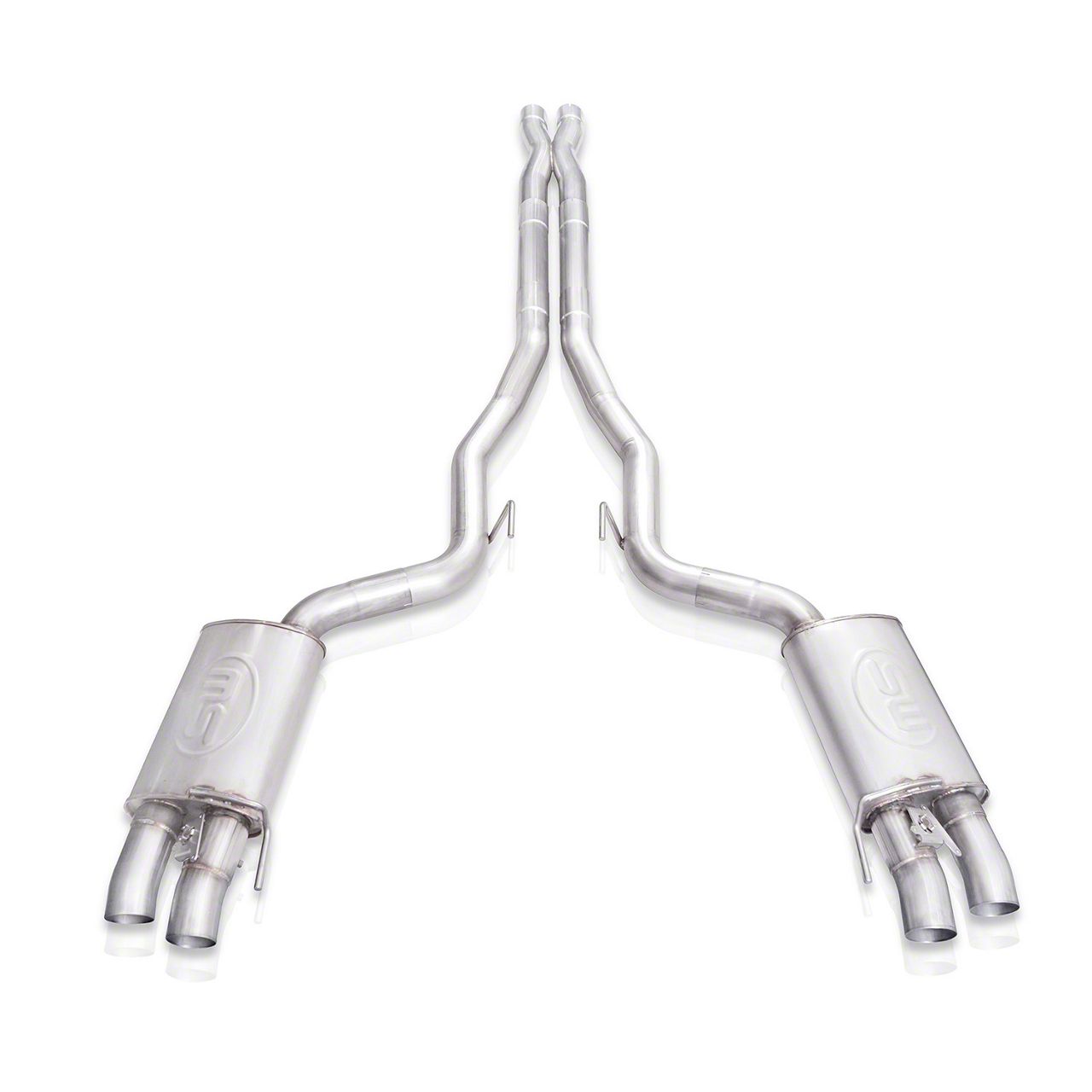 Upgraded Mustang Power. Customize your Mustang's ride with the Stainless Works Redline Series Cat-Back Exhaust with X-Pipe; Factory Connect. This cat-back exhaust rocks the senses with a drone free, aggressive road with the choice of 3 performance modes - Quiet, Normal, and Turbo.