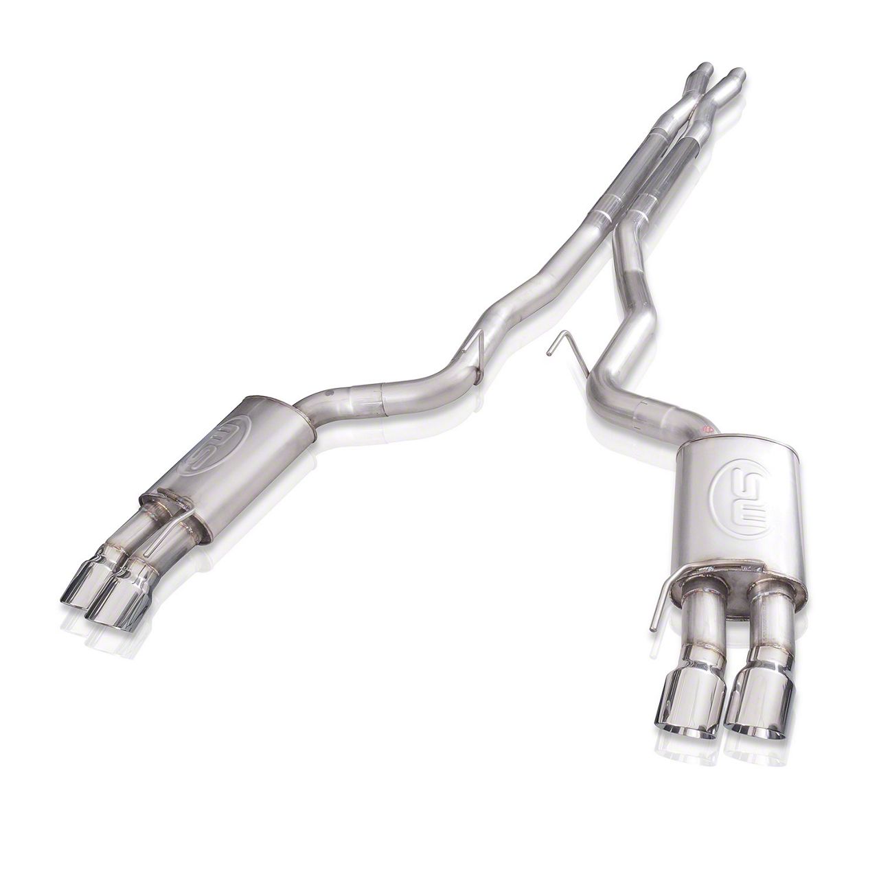 Muscle Car Exhaust Tone. This Stainless Works Redline Cat-Back Exhaust with X-Pipe is what you need to get your Ford Mustang GT an upgraded sound and performance. As is typical of Stainless Works’ Redline series, this exhaust assembly feature chambered mufflers and double-walled tips to offer the most aggressive and loud exhaust tone. Your Mustang will roar on the road, while you get a drone-free cabin experience.