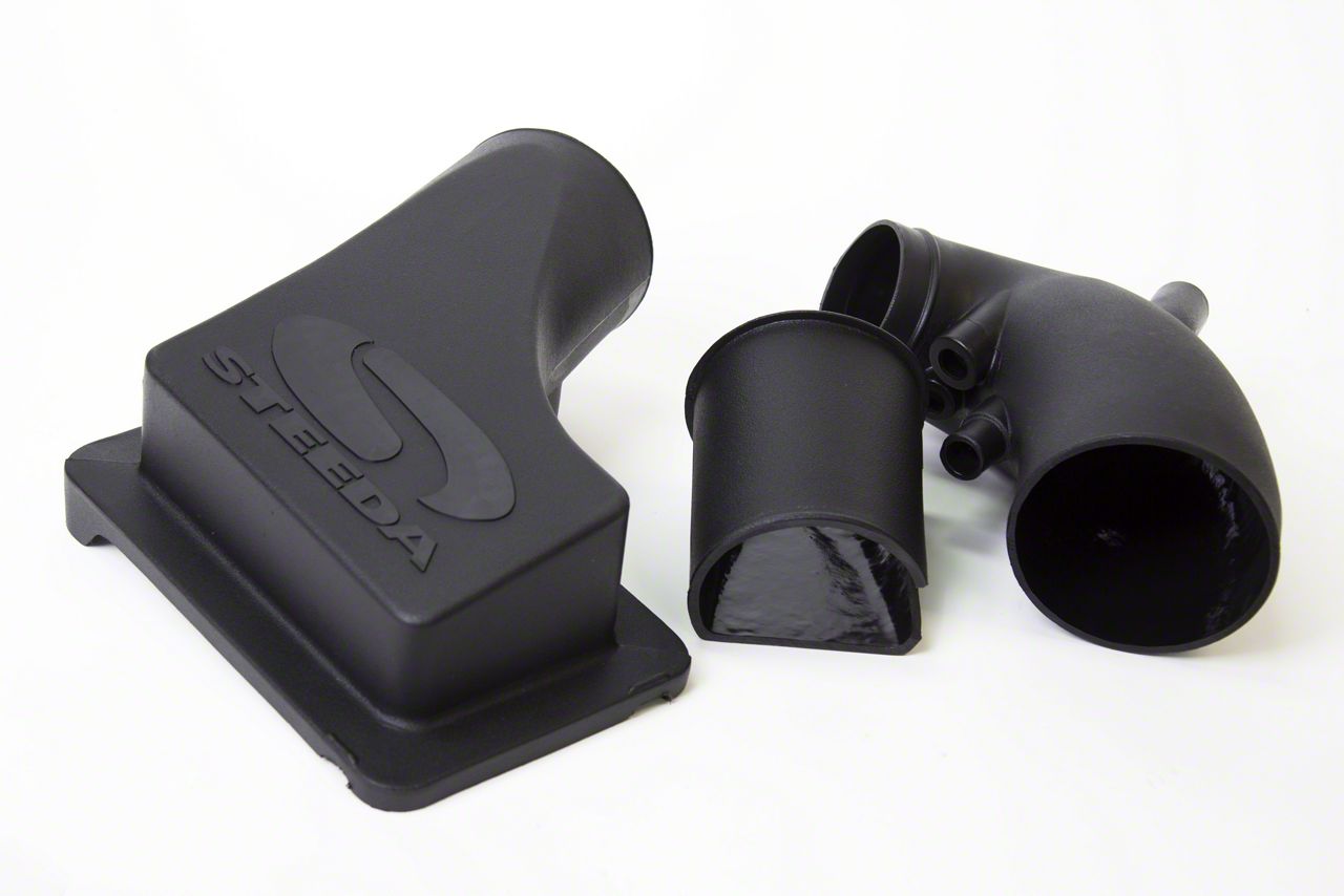 Unique Design. Steeda engineered their Closed Intake to retain all factory vacuum lines as well as the stock cold air ducting from the front grille for optimal air flow. The closed lid design prevents hot air from entering the intake for noticeably lower intake temperatures. The ProFlow intake tube features a provision to retain the factory sound tube, but also includes a block off cap for those looking to delete it entirely.