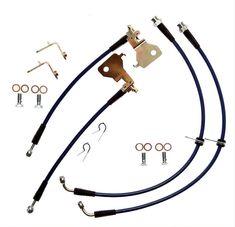 Reliable Braking. Fix and upgrade your stock brakes and experience more responsive stops with this Stifflers Clear Stainless Steel Brake Hose Kit; Front and Rear on your Mustang. Sporting a tough Teflon stainless steel braiding, it offers longer lasting performance that is durable against abrasion and fading. It is built to exceed industry standard and features direct fitment for easy replacement of your stock.
