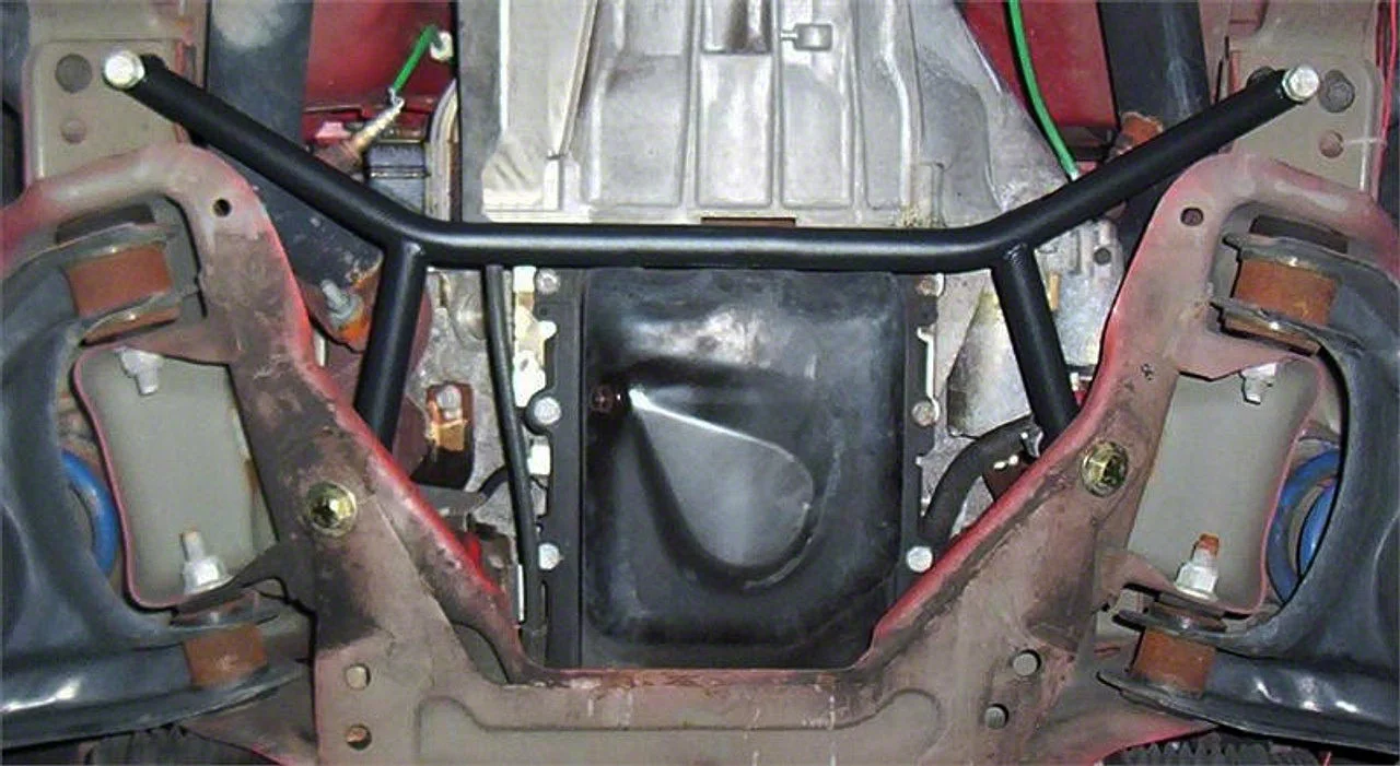 This additional stiffness helps to maintain correct front suspension geometry while under load by minimizing flexing.The result is tighter steering response and more predictable handling under cornering and braking. *May have clearance issues with some 7qt oil pans.