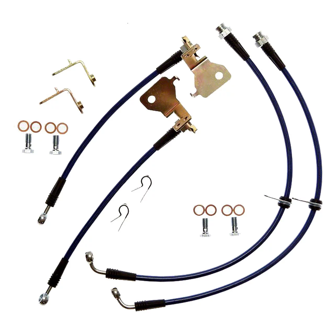 Even under normal driving conditions, factory rubber hoses expand, resulting in spongy, slow and inconsistent braking. This stainless steel brake hose kit eliminates that problem and gives firm and responsive braking for all of your daily and performance driving needs!