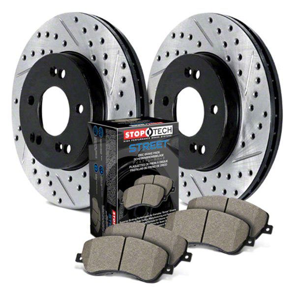 Description. The best of both worlds; these StopTech Street Axle Packs feature drilled & slotted StopTech Sport Rotors and StopTech Street pads for significantly improved performance with low dust and noise.