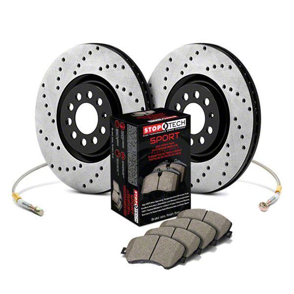 Significant brake performance improvements using the factory calipers and pre-matched; direct-replacement (OEM) sized components. This StopTech Sport Axle Pack includes cross-drilled StopTech Sport Rotors; StopTech Sport Pads and StopTech Stainless Steel Lines.
