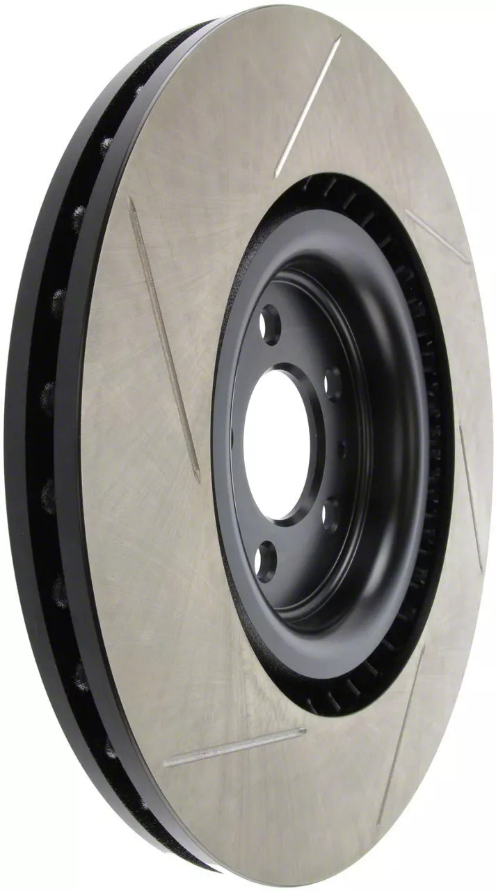 High-Performance Brake Rotor. The StopTech Sport Slotted Rotor; Front Driver Side is designed to replace stock rotors with an enhanced performance component that improves braking response, bite, and cooling. It is intended for drivers seeking a balance of street and track performance, providing superior stopping power and debris management to ensure consistent braking under demanding conditions.