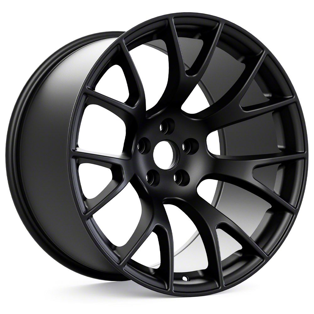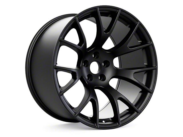 Hellcat Style Matte Black Wheel; 20x9. The Hellcat Style Matte Black Wheel offers a striking balance of style and refinement. Its unique design accentuates the vehicle's aesthetic, while the premium construction underscores its robust nature. This wheel is a perfect choice for those seeking both elegance and a strong visual statement.