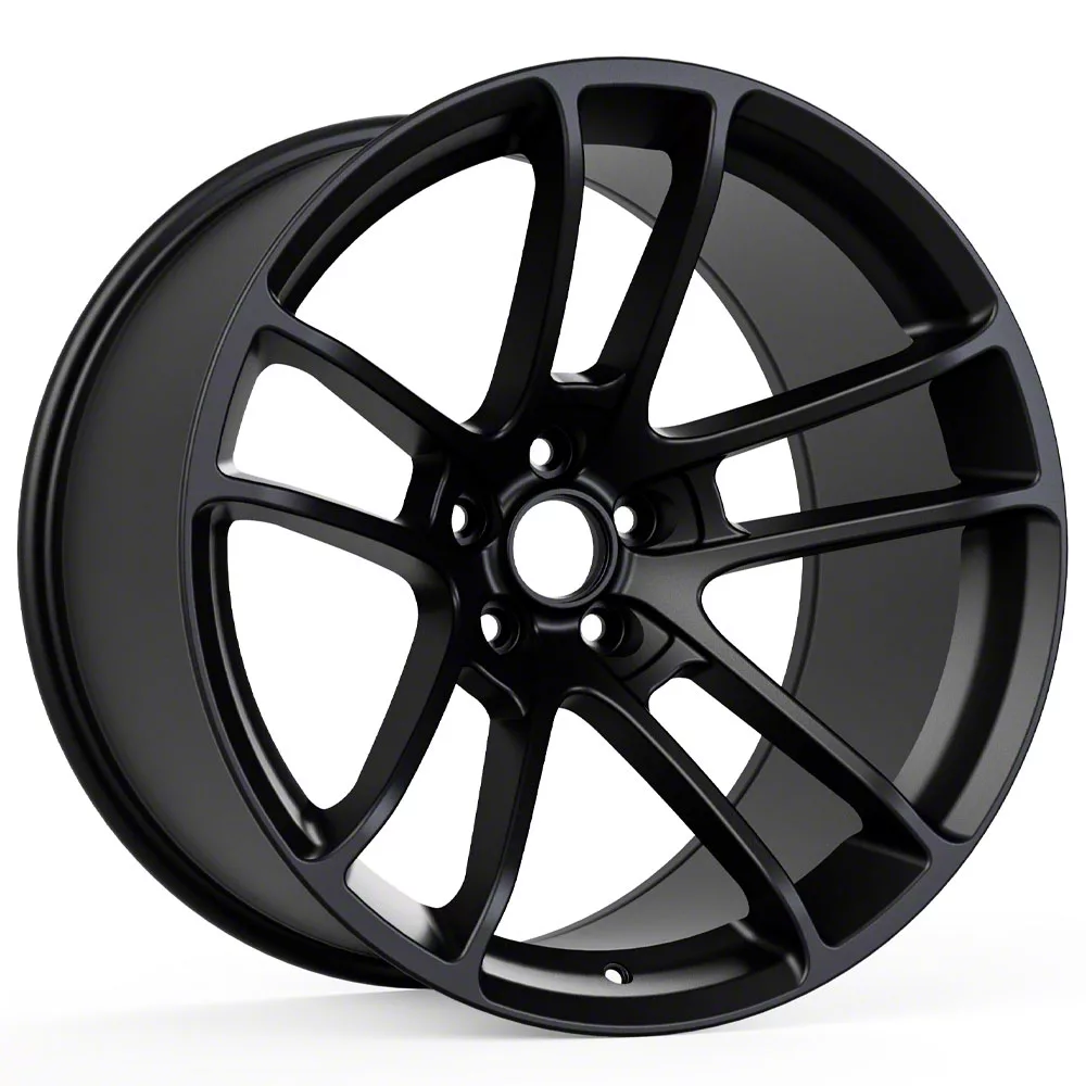 Hellcat Widebody Style Matte Black Wheel; Rear Only; 20x10.5. The Hellcat Widebody Style Matte Black Wheel offers a striking balance of style and refinement. Its unique design accentuates the vehicle's aesthetic, while the premium construction underscores its robust nature. This wheel is a perfect choice for those seeking both elegance and a strong visual statement.