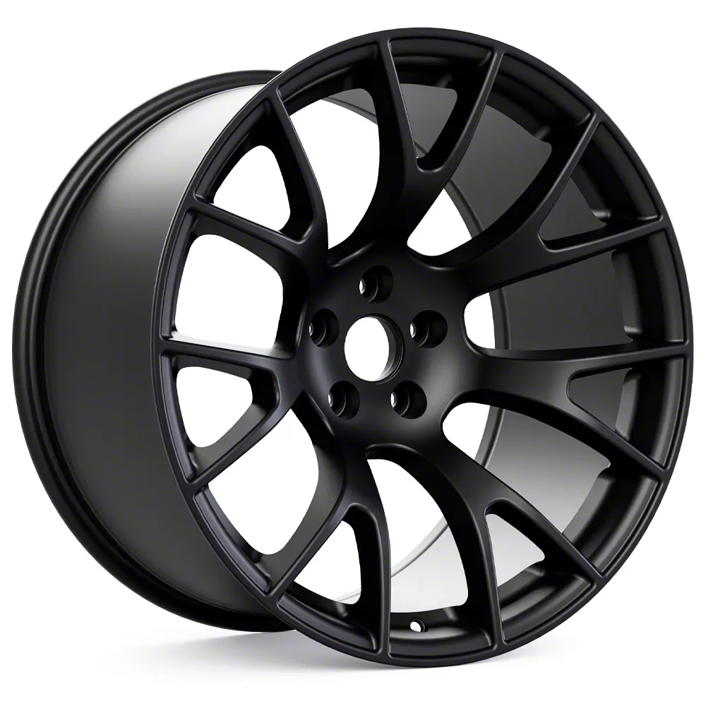 Hellcat Style Matte Black Wheel; 20x11. The Hellcat Style Matte Black Wheel offers a striking balance of style and refinement. Its unique design accentuates the vehicle's aesthetic, while the premium construction underscores its robust nature. This wheel is a perfect choice for those seeking both elegance and a strong visual statement.