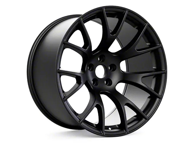 Hellcat Style Matte Black Wheel; Rear Only; 20x10.5. The Hellcat Style Matte Black Wheel offers a striking balance of style and refinement. Its unique design accentuates the vehicle's aesthetic, while the premium construction underscores its robust nature. This wheel is a perfect choice for those seeking both elegance and a strong visual statement.