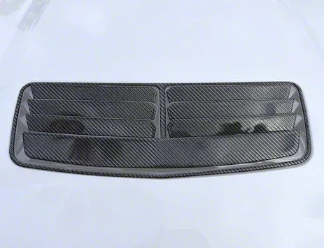 Stylish Enhancement. The Hood Vent Accent Trim is specifically designed for your Mustang, offering a stylish enhancement that complements the vehicle's dynamic design. This trim piece is proudly made in the USA and provides an attractive Domed Carbon Fiber finish that adds a premium look to the vehicle's exterior.