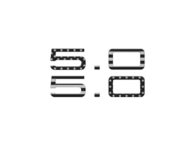Bold Patriotic Accent for Your Mustang. The Side 5.0 Emblem Inserts add a unique, custom touch to your 2024 to 2025 Mustang GT with a black and silver American flag design. These inserts enhance your vehicle's side profile with patriotic style while maintaining the factory look of the 5.0 emblems.