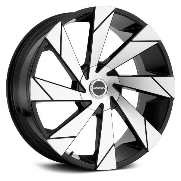 Strada Moto Gloss Black Machined Wheel; 20x8.5. The Strada Moto Gloss Black Machined Wheel offers a striking balance of style and refinement. Its unique design accentuates the vehicle's aesthetic, while the premium construction underscores its robust nature. This wheel is a perfect choice for those seeking both elegance and a strong visual statement.