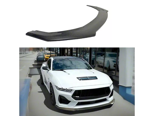 Aggressive Styling Upgrade. The SuperAutoUSA Splitter Lip is designed to deliver a sharp, race-inspired appearance while improving aerodynamic efficiency. With its sleek carbon fiber look and precision form, this splitter enhances both aesthetics and performance. This SuperAutoUSA Splitter Lip fits 2024-2025 Ford Mustang models, with the full application clearly stated in this description.
