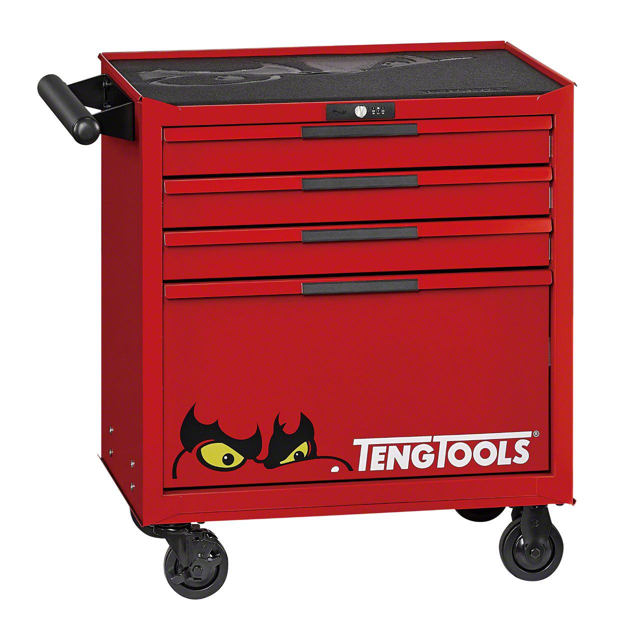 [ 4 DRAWERS ] Heavy duty low roller cabinet equipped with 4 individual drawers designed for where space optimization is crucial and fits neatly under low workbenches. [ HEAVY GAUGE STEEL ] Crafted with a robust 3-piece heavy gauge steel cabinet frame, fortified with our advanced 5-step phosphate-free rust protection, featuring a reinforced fully extendable drawer design which is capable of holding up to 88 lbs. [ SECURE ] Flexible security locking option allowing you to secure your tools by switching between combination and key lock depending on your preference. [ TOOL IDENTIFICATION ] Flat aluminum drawer front handles with space for labelling for quick tool identification. [ COMFORTABLE HANDLES ] Comfort grip handles ergonomically designed for ease of movement which can be used with a side shelf to create extra space for storing longer items conveniently at your side (side shelf sold separately), foam mats supplied in each drawer to protect loose tools and a foam worktop mat for added workspace. [ 3-STEP BALL BEARING SLIDERS ] Each drawer is equipped with 3-step ball bearing sliders to ensure a smooth and reliable opening and closing action every time. [ HEAVY DUTY CASTORS ] Two swivel and two fixed, with brakes to navigate your workspace with ease.
