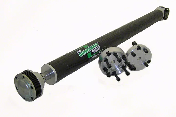 Carbon Fiber Driveshaft. This driveshaft is made of high-quality and durable carbon fiber. This makes your new driveshaft extra tough against impacts, as well as corrosion. Furthermore, it is crafted with billet aluminum style plates and includes special-grade hardware.