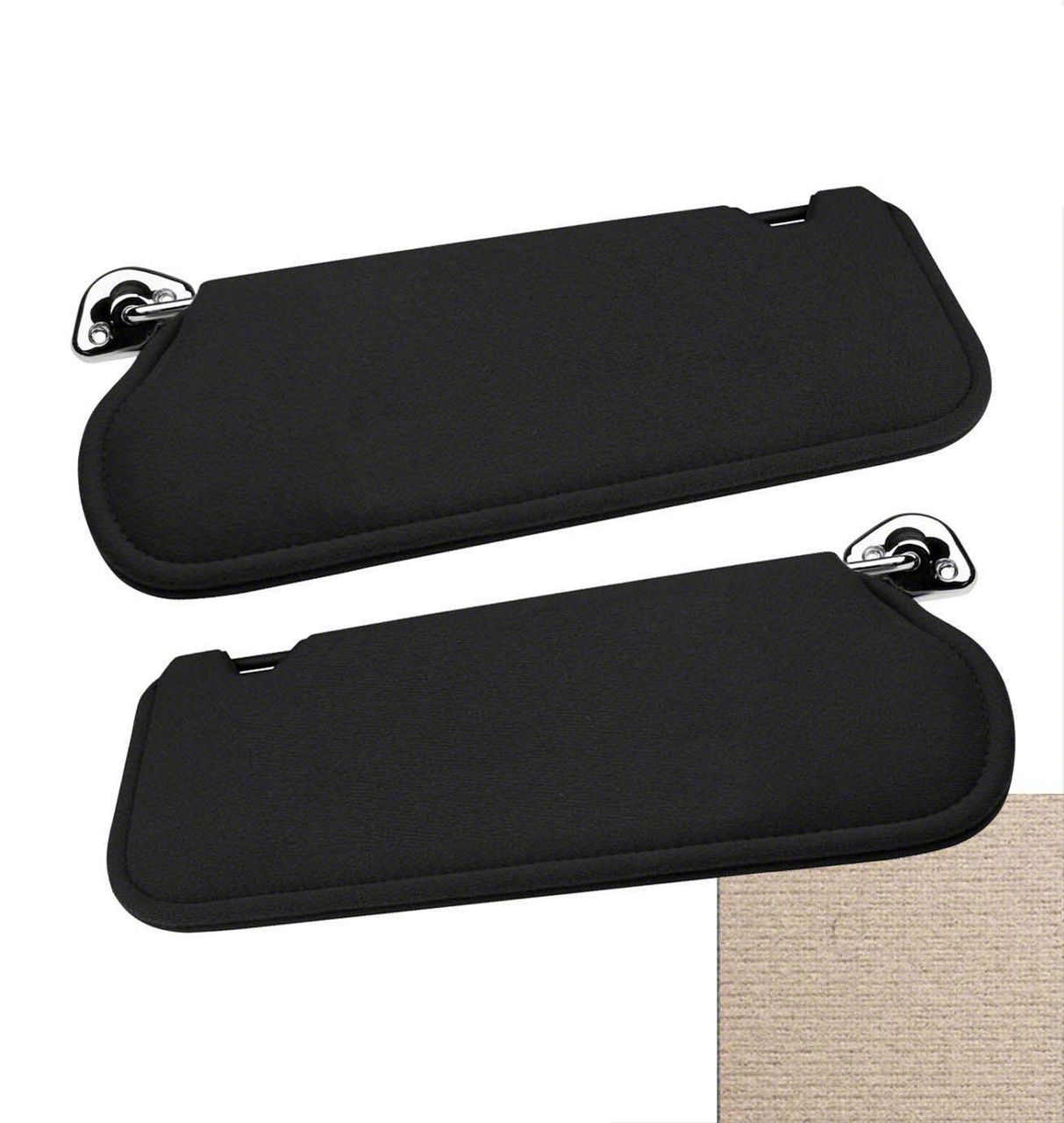 Construction and Appearance. Made from high-quality, automotive-grade materials, these sun visors feature a sleek titanium gray cloth finish. The durable construction ensures long-lasting performance and adds a touch of elegance to your Mustang's interior.