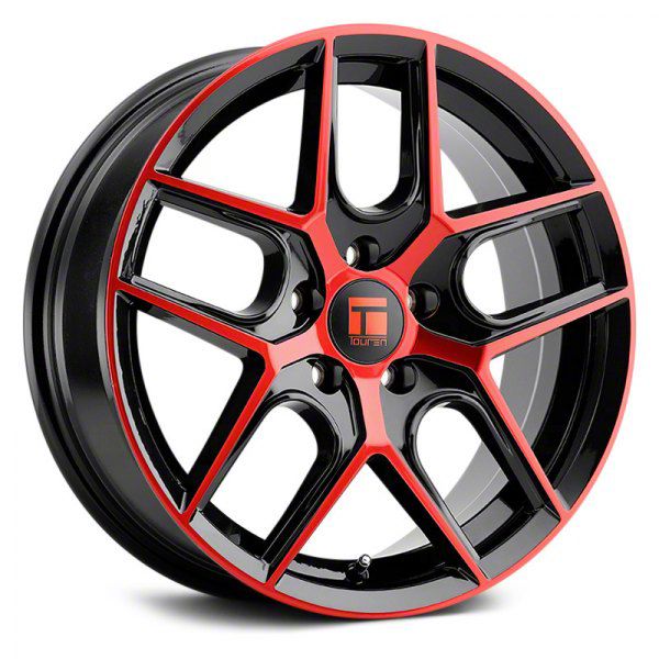 Gloss Black Finish with Red Accents. This 18x8 Touren Wheels TR79 Series Wheel is completed in a high quality black finish with red accents for a striking contrast in appearance that everyone will envy. For added protection and good looks, this Wheel features a durable, gloss clear coat that is tough enough to stand up against the hazards of everyday driving - including road chips and pitting.