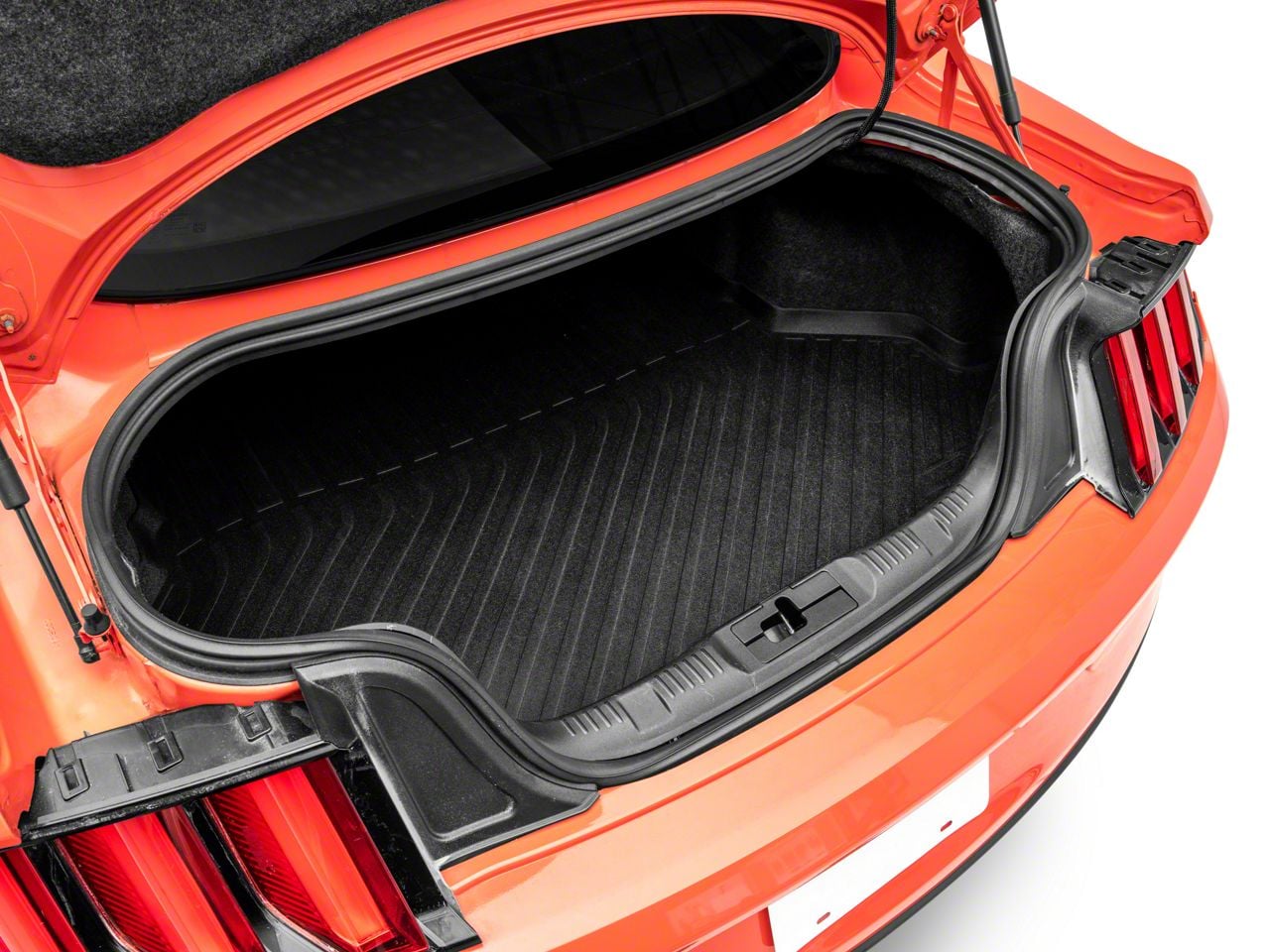 Application. TruShield Precision Molded Cargo Liner; Black is compatible with the 2015-2023 Ford Mustang without Subwoofer.