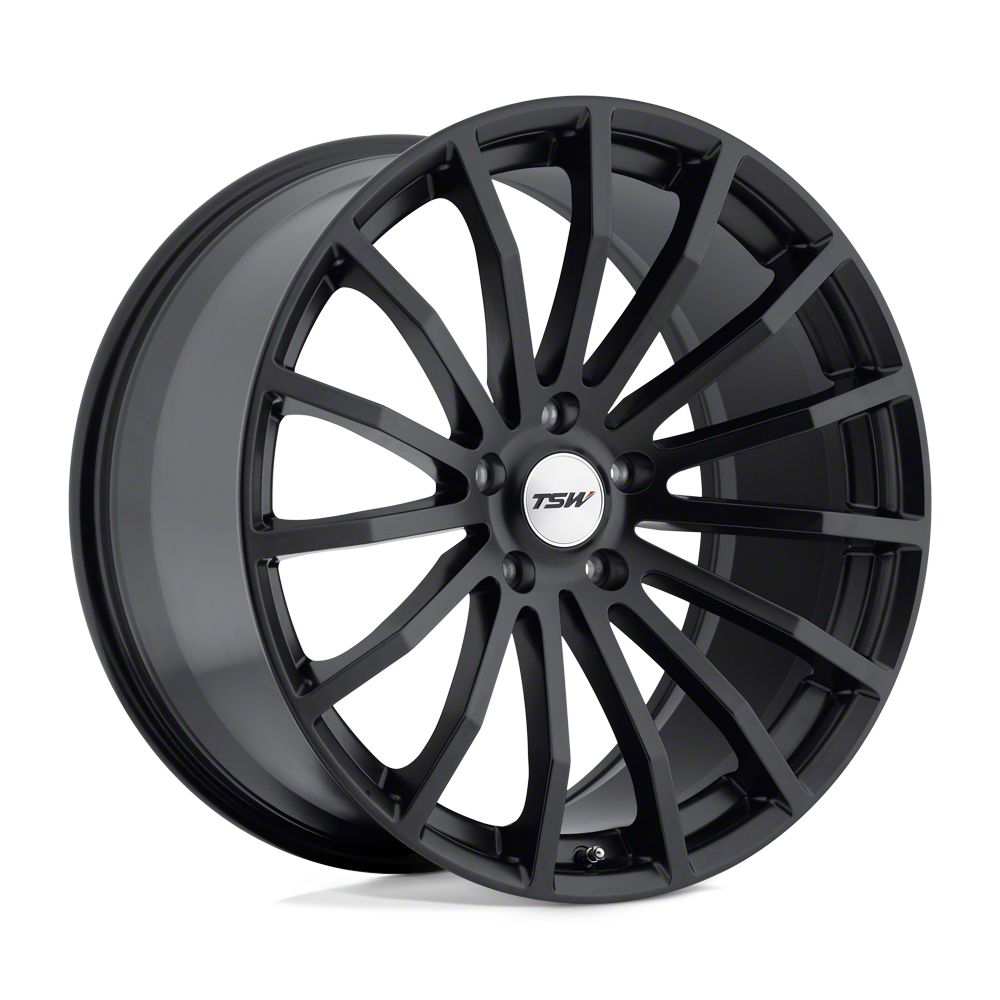 This 19x9.5 TSW Mallory Matte Black Wheel; 19x9.5 is completed in a high-quality matte black finish that will make everyone take notice. For added looks and strength, the wheel features a durable clear coat that withstands the rigors of daily driving.