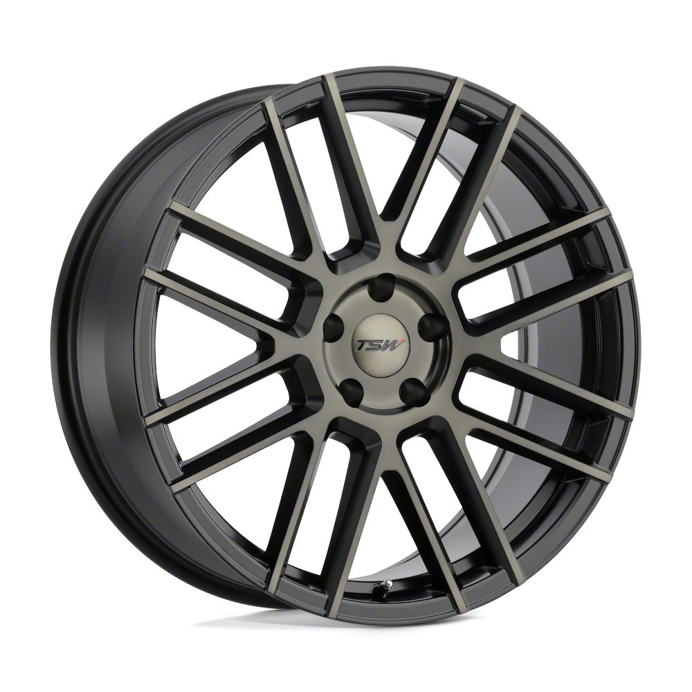 This 19x9.5 TSW Mosport Matte Black with Machine Face and Dark Tint Wheel; 19x9.5 is completed in a matte black finish with a steel machined face and dark tint for impressive good looks. There's a durable clear coat that withstands the rigors of daily driving.