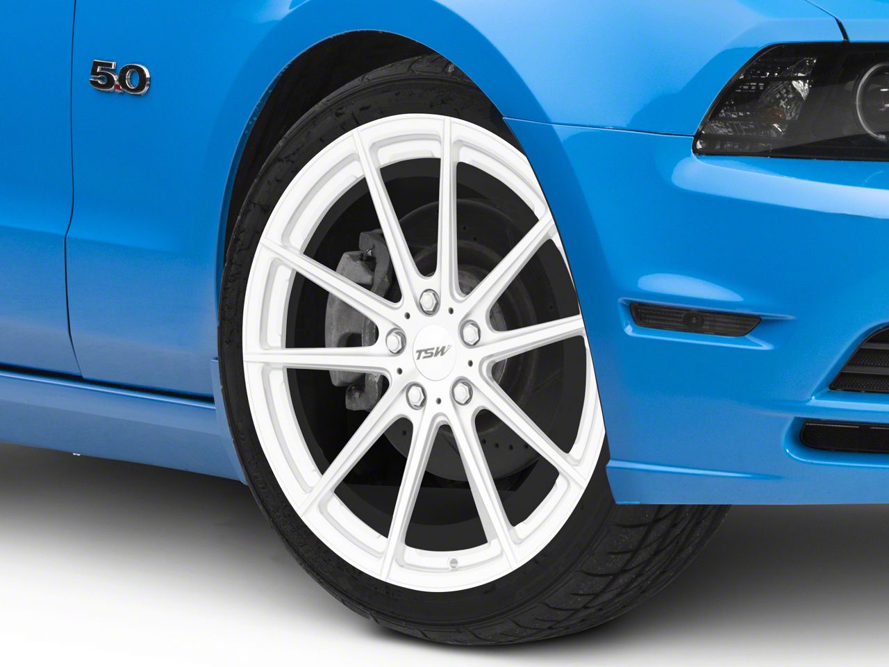 Application. This TSW Bathurst Silver Wheel; 20x9.5, with a backspace of 6.628 Inch, 168.4mm and a bolt pattern of 5 x 114.3mm (5 x 4.5-Inch), is designed to enhance alignment and driving stability. It's specially designed to fit the 2010-2014 Mustang models, sold individually.