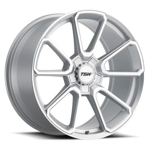 The 20x10 TSW Sonoma Silver with Mirror Cut Face Wheel is completed in a high-quality silver finish with mirror cut accents that will be the envy of everyone. There is a durable clear coat for added looks and protection.