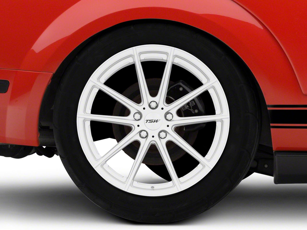 This 19x10.5 TSW Bathurst Silver Wheel is completed in a high-quality silver finish that will make the wheel the envy of everyone. There is a durable clear coat that protects against driving hazards.One-Piece Cast Aluminum Construction. This wheel is manufactured using gravity casting. Gravity casting is the process of pouring a molten aluminum alloy into a wheel mold or form utilizing the earth's own gravity to help fill the mold. The result is a strong, durable wheel that has the same good looks as a more expensive wheel, at a fraction of the price.