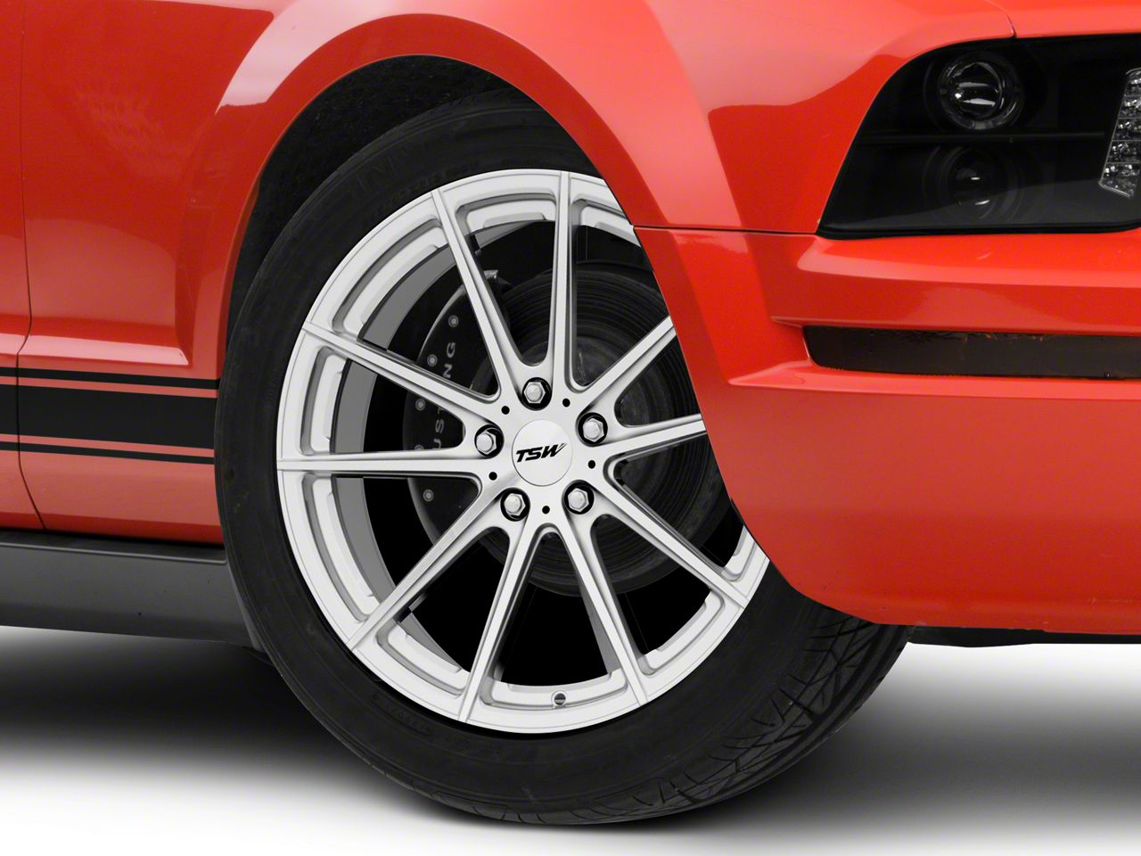 Application. This TSW Bathurst Silver Wheel; 19x8.5, with a backspace of 5.341 Inch, 135.7mm and a bolt pattern of 5 x 114.3mm (5 x 4.5-Inch), is designed to enhance alignment and driving stability. It's specially designed to fit the 2005-2009 Mustang models, sold individually.