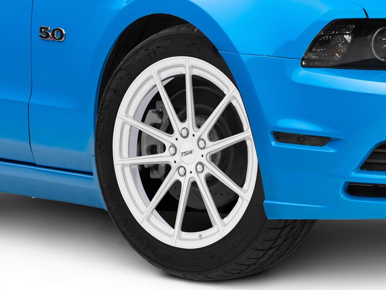 Application. This TSW Bathurst Silver Wheel; 19x9.5, with a backspace of 6.786 Inch, 172.4mm and a bolt pattern of 5 x 114.3mm (5 x 4.5-Inch), is designed to enhance alignment and driving stability. It's specially designed to fit the 2010-2014 Mustang models, sold individually.
