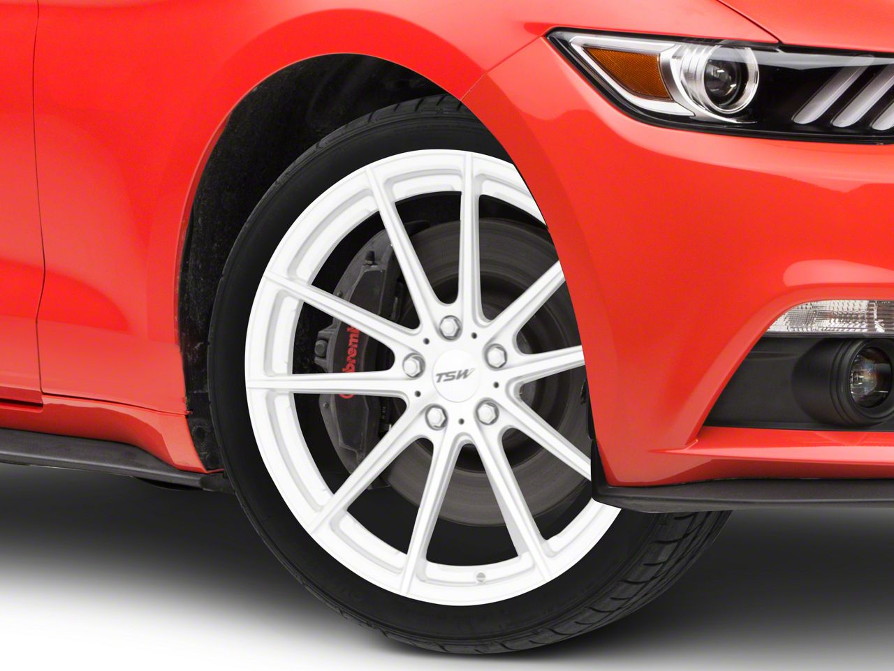 Application. This TSW Bathurst Silver Wheel; 20x9.5, with a backspace of 6.628 Inch, 168.4mm and a bolt pattern of 5 x 114.3mm (5 x 4.5-Inch), is designed to enhance alignment and driving stability. It's specially designed to fit the 2015-2023 Mustang EcoBoost, V6 models, sold individually.